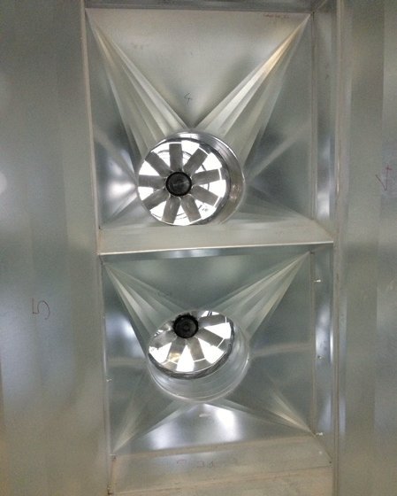 Druckbelüftungsanlage für ein Stiegenhaus in doppelter Ausführung (Ausfallssicherung) für das Haus der Ärztinnen im 10. Bezirk Wiens.